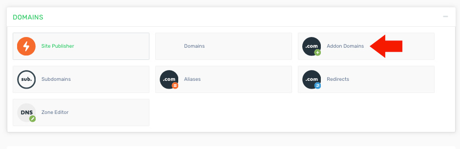 - Locate and click on the "Addon Domains" icon under the "Domains" category.