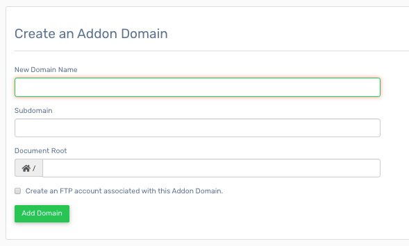 4. Click the "Add Domain" button to create the addon domain.