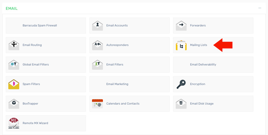 2. Locate the and click on the "Mailing Lists" icon within the "Mail" category.