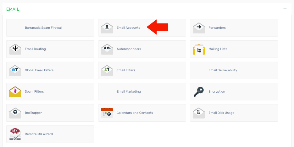 2. Locate and click on the "Email Accounts" icon within the "Mail" category.