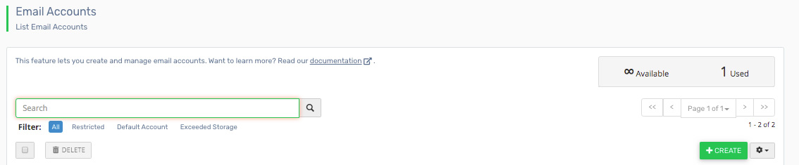 - Mailbox Quota Select how much space the email account will be able to use