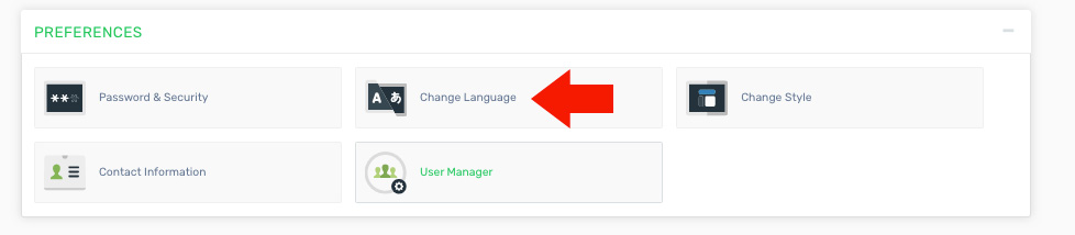 - Locate and click on the "Change Language" icon under the "Preferences" category.